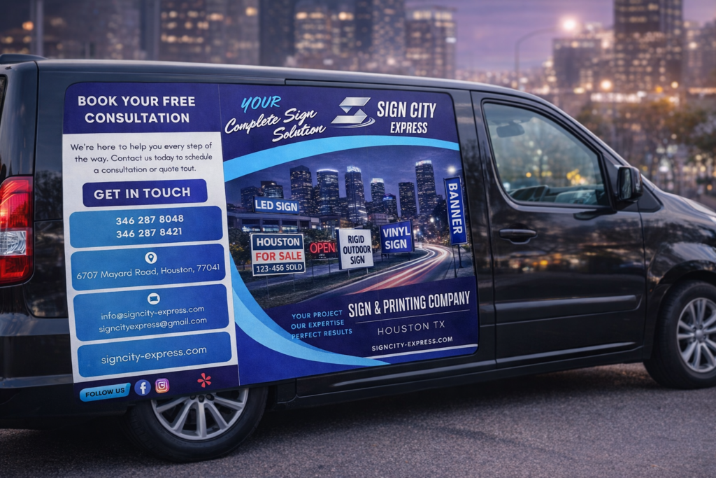 Turn your company vehicles into a powerful mobile marketing machine that promotes your business everywhere you go. Whether you’re driving across Houston or parked at a job site, professionally designed vehicle graphics help you stand out, build trust, and attract more customers.